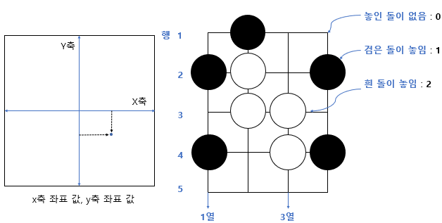바둑판에 놓인 바둑돌의 위치 정보도 2차원 형식의 데이터