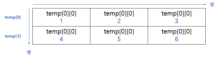 2차원 배열 선언하기 – 열(X축) 단위로 묶음